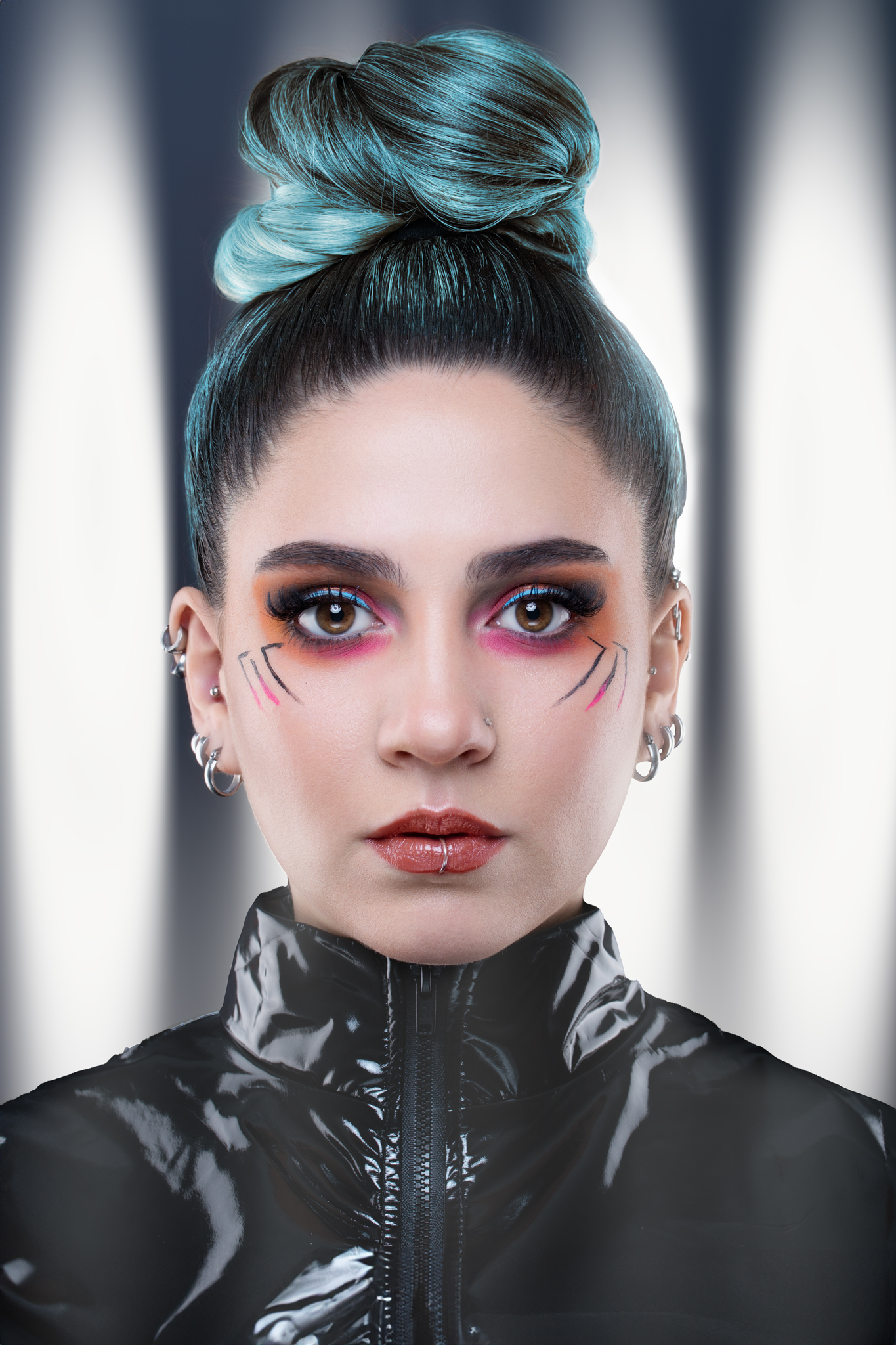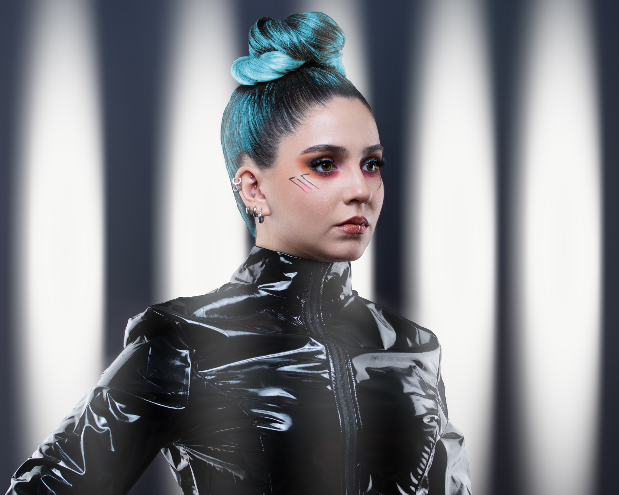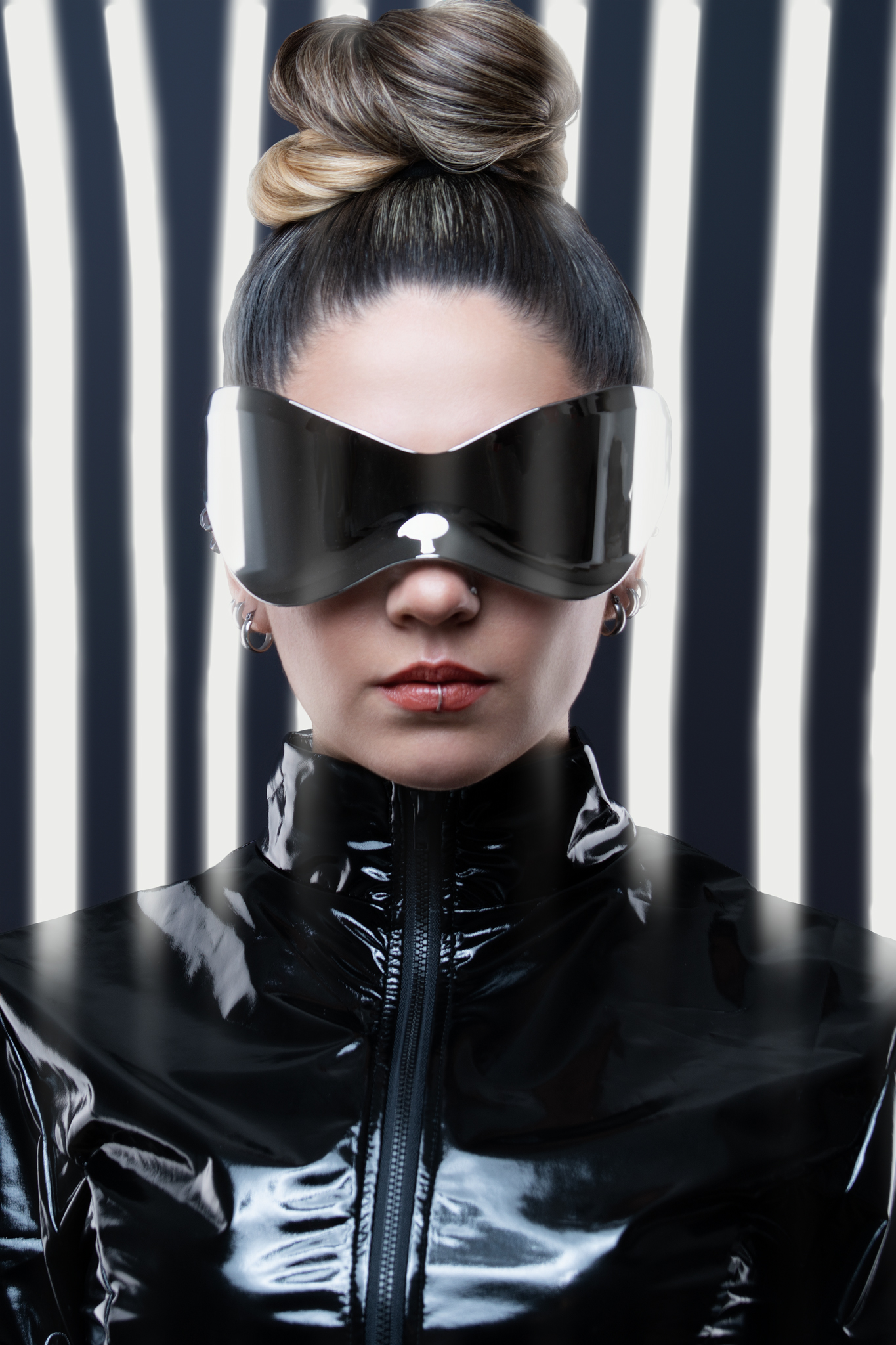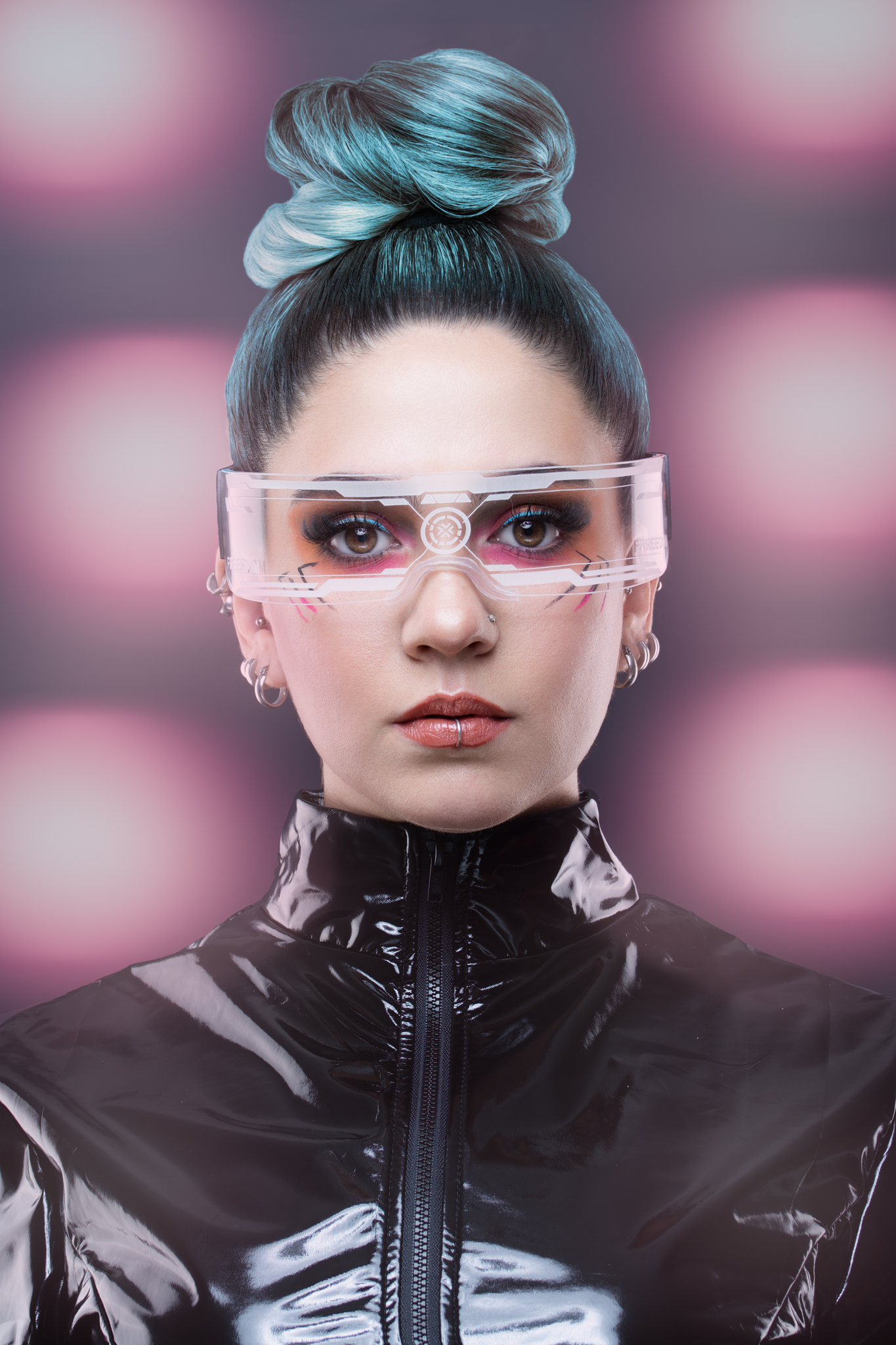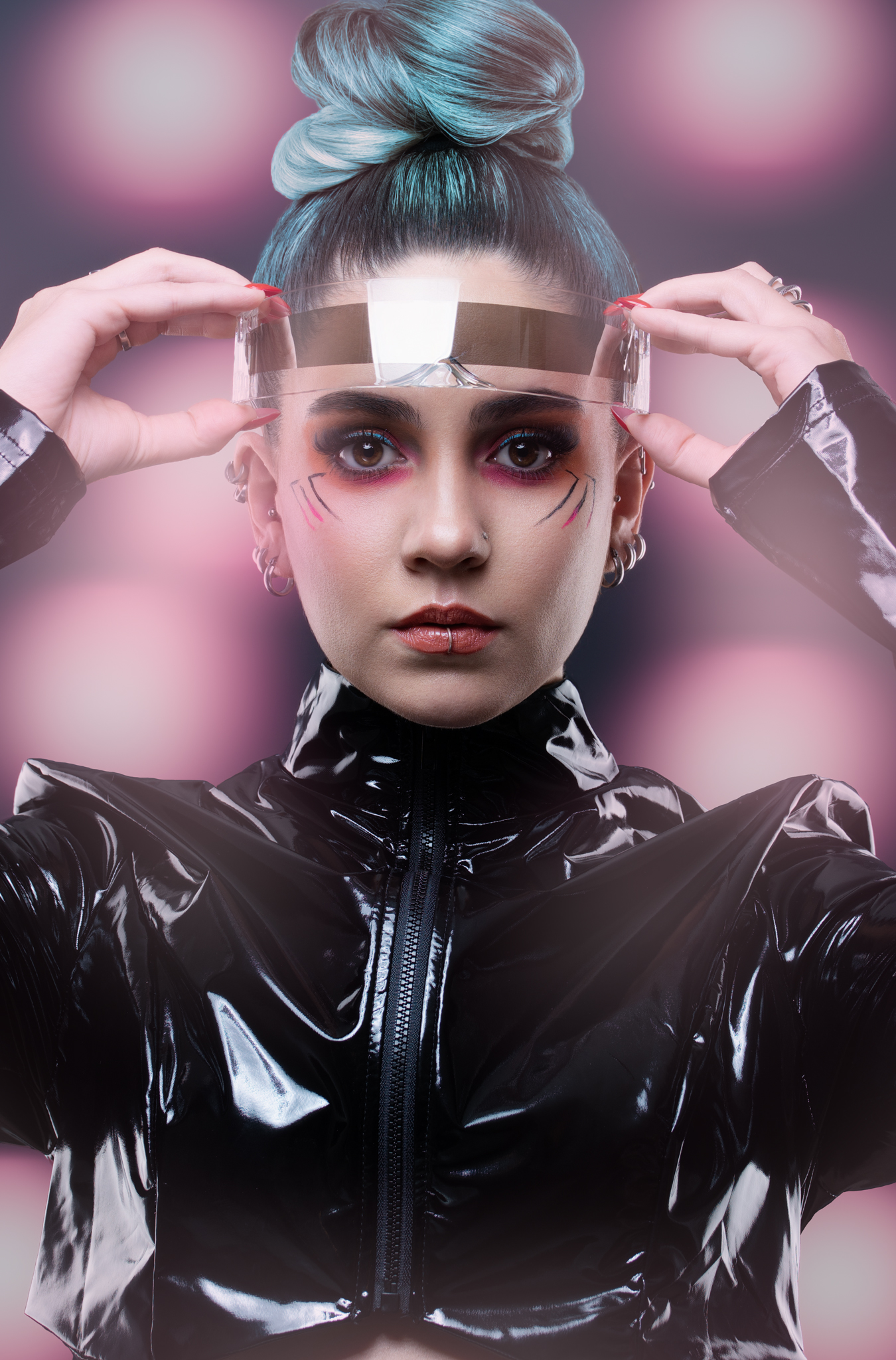 Serie editorial que mezcla estética cyber, moda oscura y dirección de retrato.